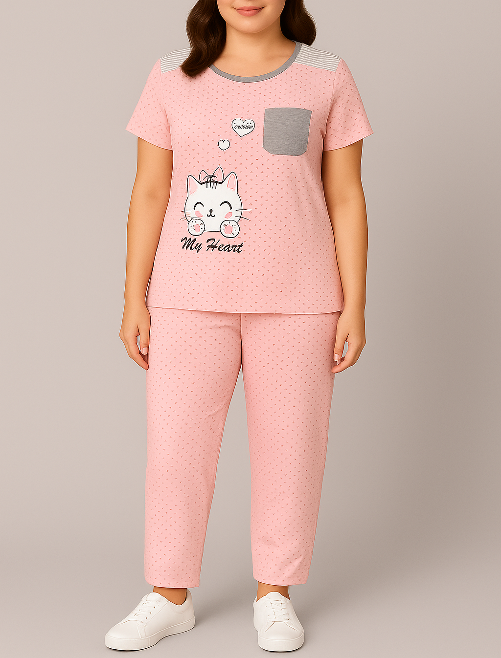 Sweetheart Kitty Pyjama Set – Cute, Comfy & Perfect for Lounging for Women